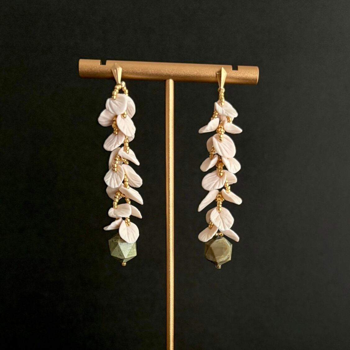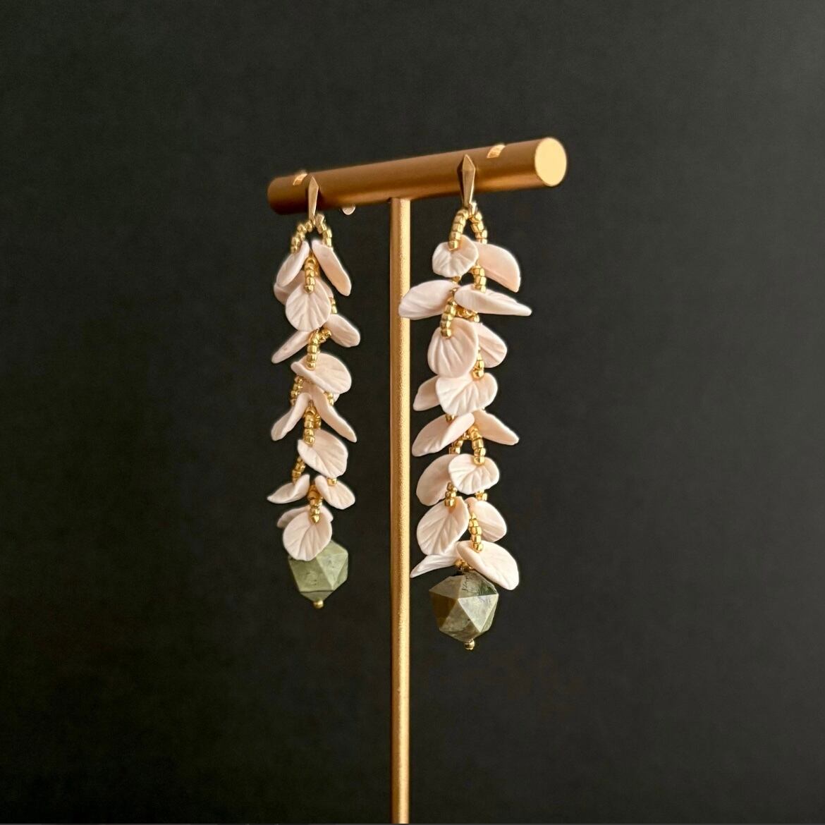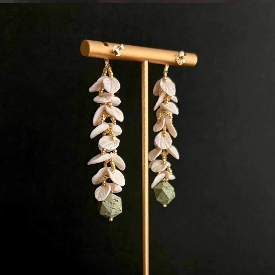 Leaf部分:14gf、ポリマークレイ、グリーンオパール、真鍮