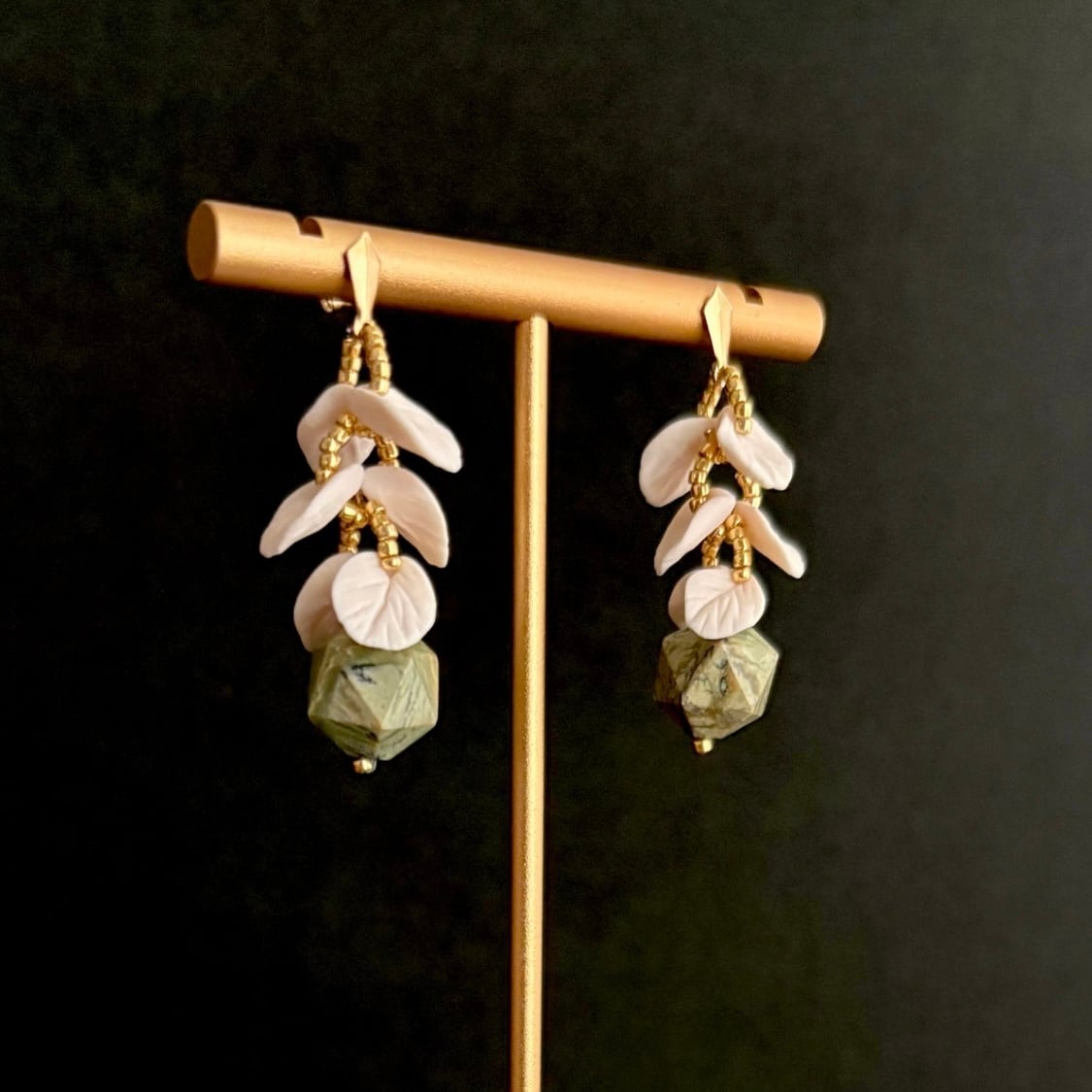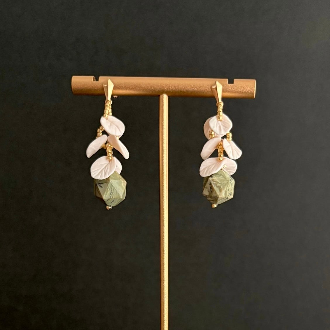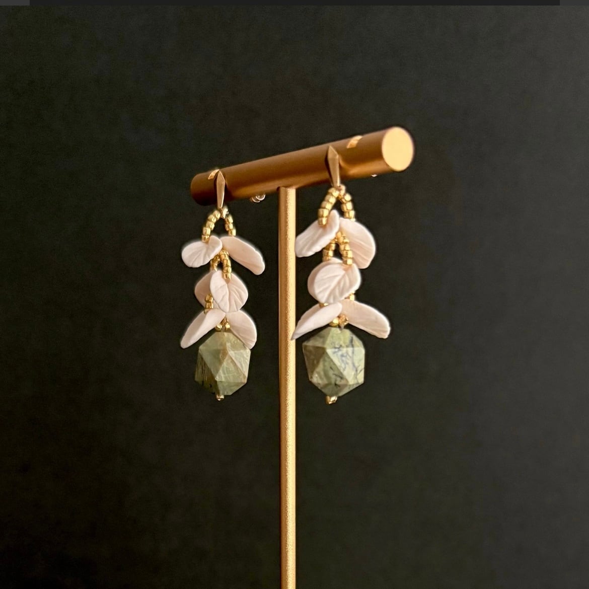 Leaf部分:14gf、ポリマークレイ、グリーンオパール、真鍮